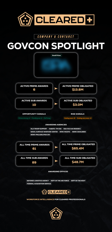 Delivers weekly opportunity intelligence for cleared professionals—spotlighting active contractors, real-time contract activity, mission trends, and emerging opportunities across the national security ecosystem.
